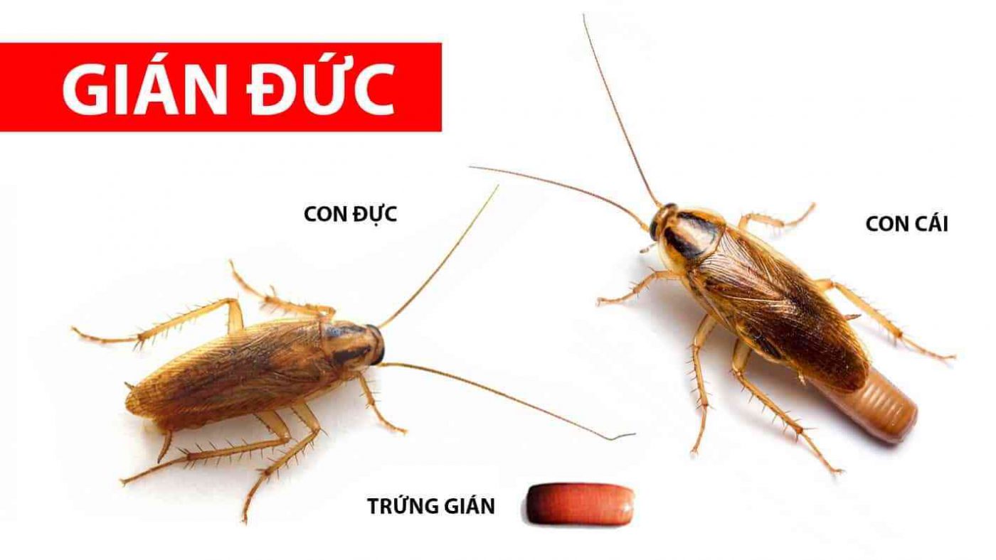Gián Đức: Có màu nâu sáng và có 2 vạch đen chạy dài từ phần lưng cho đến hết phần cánh và chỉ nhỏ từ 1,0 - 1.5 cm. Đây là loài ít gặp hơn, chúng thường sống ở nơi cống rãnh, ống dẫn chất thải. Tuy nhiên, một khi bạn đã thấy chúng ở đâu đó, ví dụ ở quầy thực phẩm chẳng hạn, thì thật sự nơi đó phải thật sự rất mất vệ sinh thì Gián Đức mới có thể xuất hiện ở đấy được.